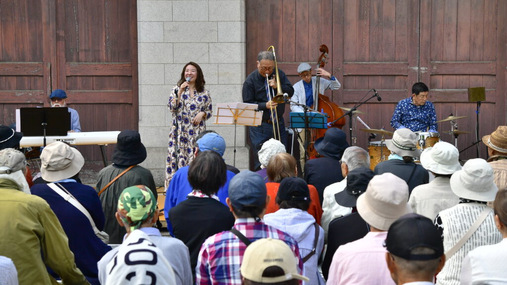 伸びやかな歌声が相楽園に心地よく流れ、バンド生演奏のステージは迫力のある見ごたえたっぷりのひと時でした